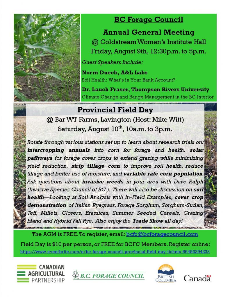 BCFC 2019 Annual General Meeting and Provincial Field Day | Aug 9: Vernon BC