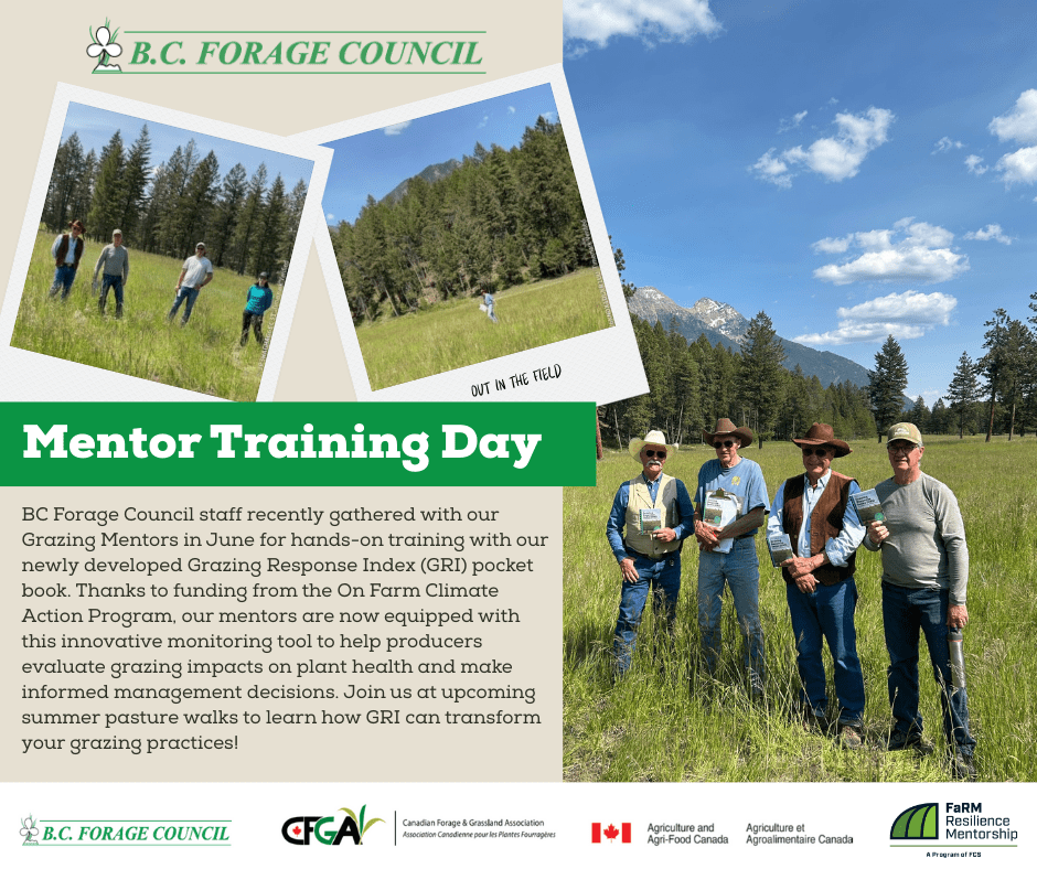 Thanks to support from the On Farm Climate Action Funding Program and Farmers for Climate Solutions, we’re able to ensure our Grazing Mentors stay at the forefront of advanced rotational grazing practices and have access to the latest research-based tools. This investment in mentor training directly translates to better support for producers across British Columbia, as our mentors take these resources and knowledge directly to farms and ranches throughout the province.